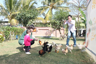 好高興,台南燈具張老闆90高齡的岳父母,謝老爺爺及奶奶家人來到書香園小憩,還去養雞喔!